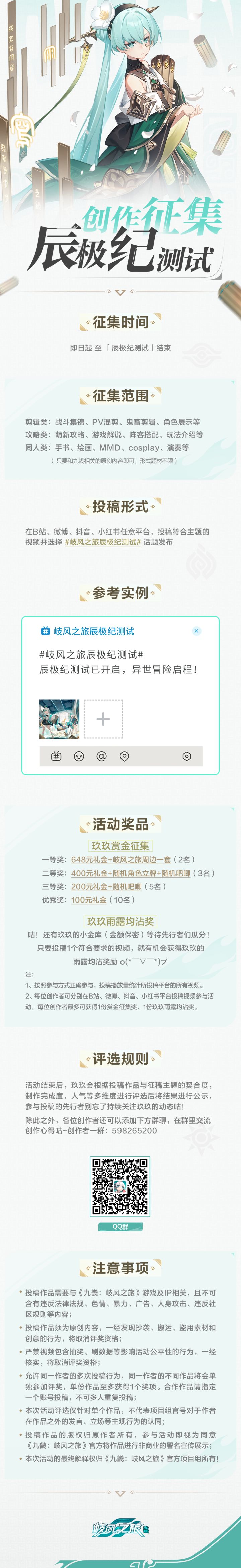 ⭐首曝PV正式发布⭐ 异世文明奇旅,冒险即刻启程! 九畿大陆的未来,在你——新生代「先行者」的手上! ——5.23 更新—— 非常感谢先行者们关注我们的游戏,在目前的游戏设计中,《九畿:岐风之旅》采用了实时战斗系统,不是回合制玩法哦 目前,我们正积极推进研发进程和优化游戏品质,尚未正式开测。还请期待后续的消息发布,玖玖会尽快向大家公布更多游戏的情报和测试信息~ ——《九畿:岐风之旅》现已开启预约—
