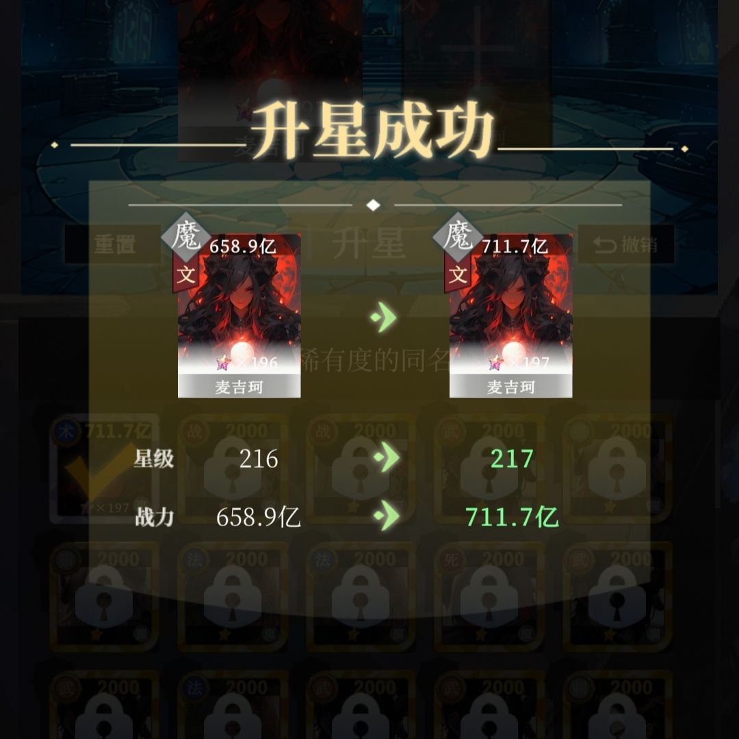 总体是个好游戏!老玩家不请自来(700亿战力麦吉珂镇楼[表情_酷]) 几个(无伤大雅的)bug和反馈建议~ 1、bug:挂机奖励显示和实际获取不一致,预计3760,实际只有3720,见图2~3。 2、bug:升星的时候职业标签失效,变成了“文”字占位符,见图4。 3、建议:玩到后期,领快速挂机奖励要点80次,钻石轻松破百万,抽卡升星要重复点无数次[表情_豹哭],即使之前版本更新改进了再次十连的操作