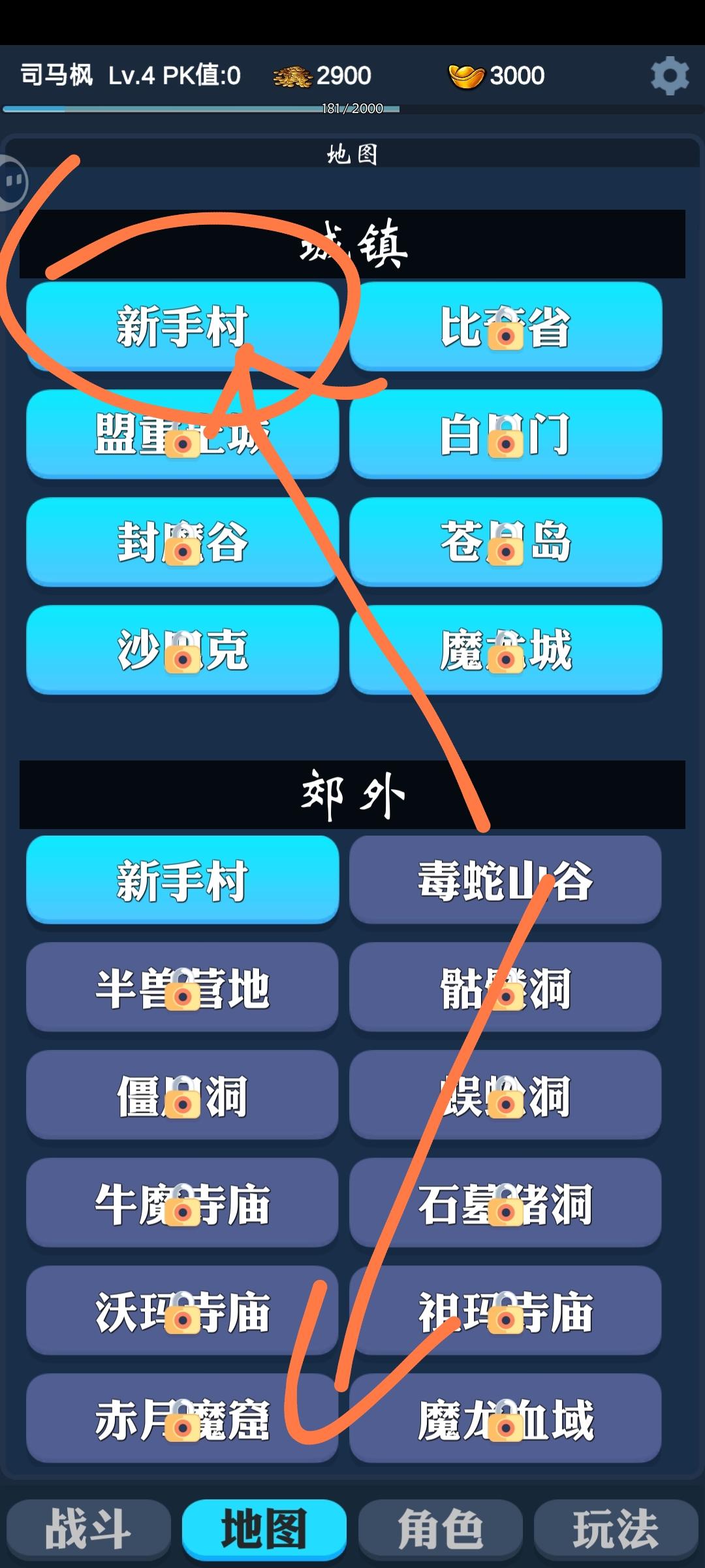 开局先进群(789985198)领取礼包,找客服领取攻略礼包。进入游戏后先跟着地图打,解锁地图后赶快下图这样经验不会落后,打到15级可以抽奖后抽出群攻技能去新手地图刷鸡成就解锁百分之20的经验加成进一步提高升级速度,后续可以加工会签到和挂机尸王殿获取高级技能。