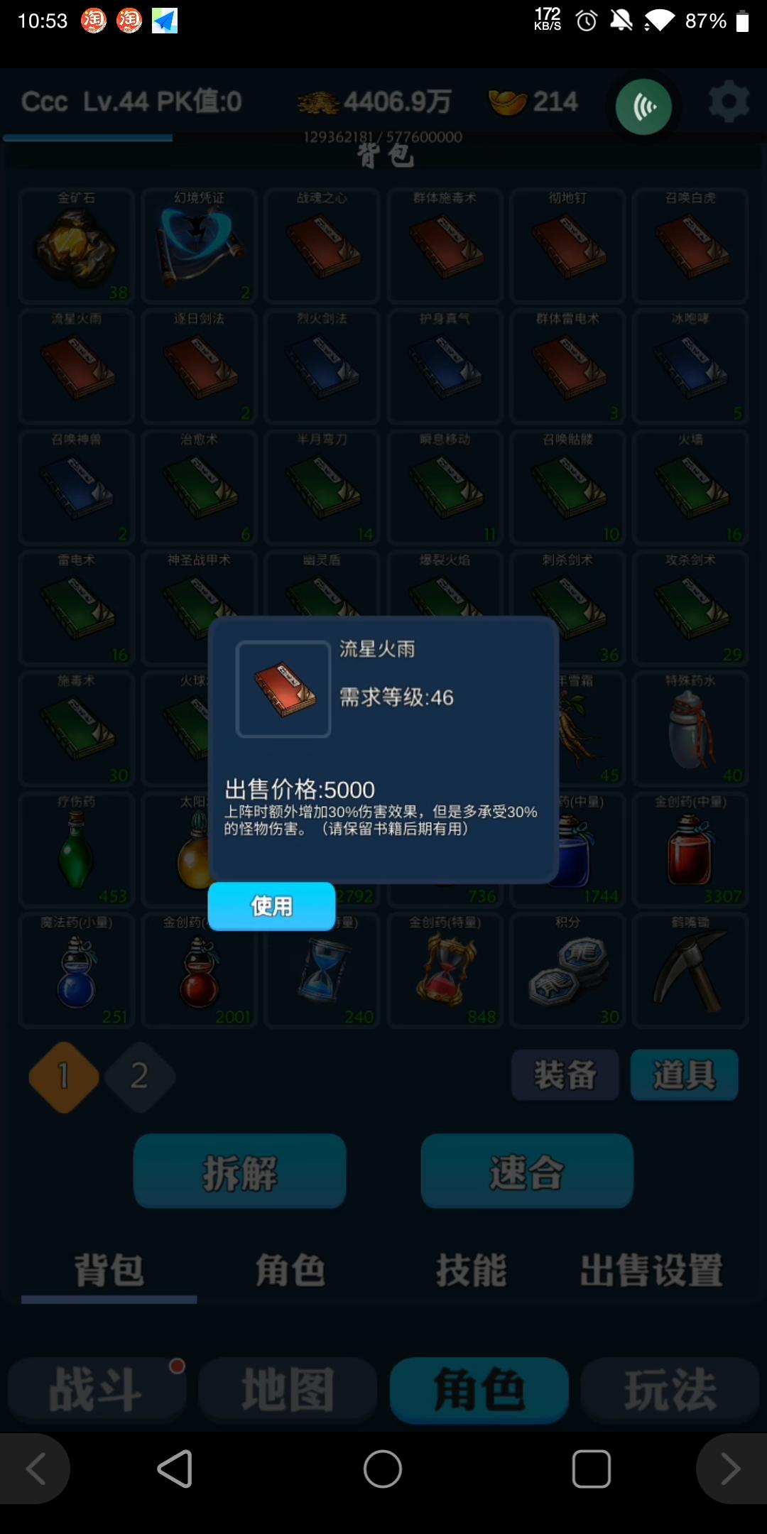 说说这个游戏要注意的地方 1.有群礼包码和好评码,不要忘记找群里的人要,蚊子再小也是肉 2.刷坤坤(30%经验),建议打到爆裂和火墙再去,效率提升一大截 3.前期血石(如图)不要买来合成浪费元宝4.前期装备挑一些防御高的穿,为后续扛触龙神做准备,25级把装备强化完技能全带战士技能加治疗术,药品换强效药水就可以硬抗触龙神了。5.从赤月开始就需要讲究一些搭配了,魔龙教主建议使用魔法盾,雷电术,神兽,刺