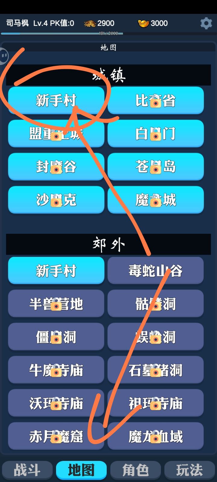 1.出生先杀鸡,手动找粉色怪物,也就是boss,经验高,爆率高,前期搞个高攻小首饰就起飞到,记住手动永远比挂机快。 2.速度到5级,去多人副本兽人古墓。这个游戏单人本和多人本可以同时刷,同样,多人本找boss,打装备,挑极品,攻击>防御 3.单人本也要继续往下推,刷一会就回去看看boss有没有出来,地图大的话要手动找boss,打死boss才开下一个图 4.多人注意组队,经验部分共享,组队按钮