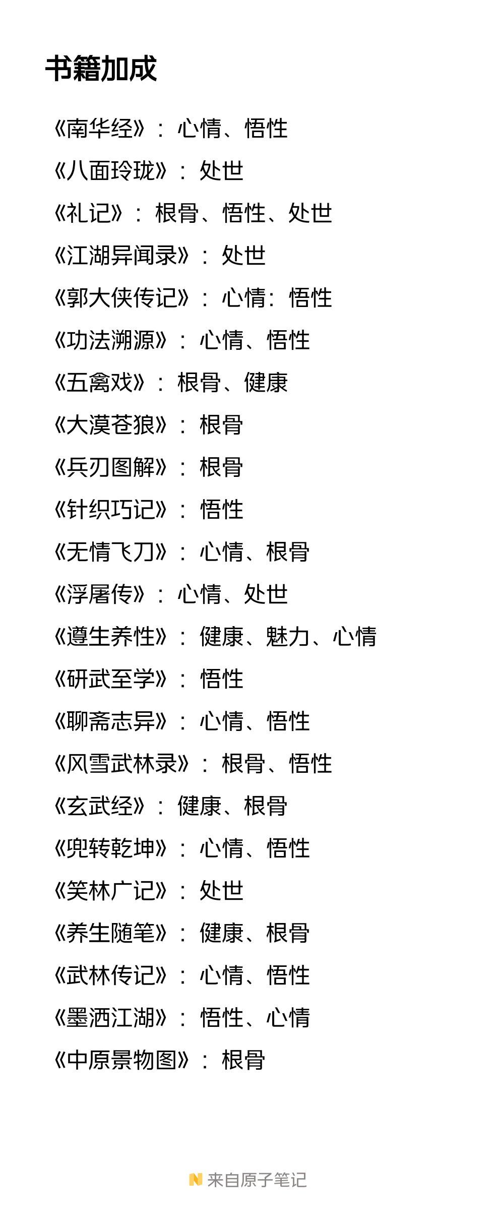 目前游戏里能买到的书基本上就是这些了,欢迎补充~附上拉满图,健康年纪大了减上限。 (ps:剑宗什么时候开!真的喜欢玩剑,一剑三百多,加上武器连携的一百,就是一剑四百多,两三剑戳死一个小朋友。)#攻略