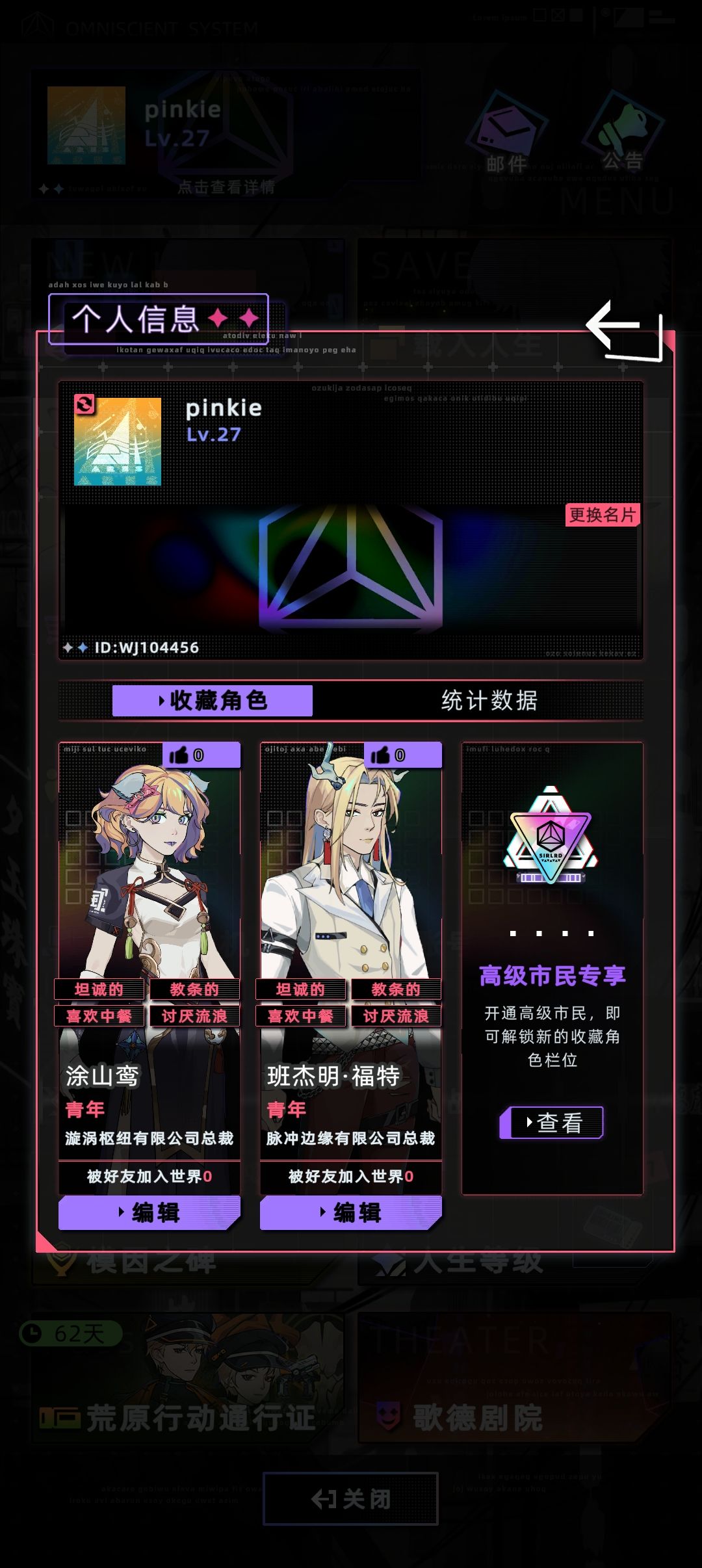 昨天开始下载的游戏,摸索了接近半个下午,本来说今天上游戏来看个攻略,结果发现没有一位大佬写这东西,最后决定自力更生给其他新手玩家给个借鉴玩法。(希望能蹲到大佬的攻略) 前提概述:以下内容根据个人玩法心得汇总,做的不好的地方求轻喷。 1.开局 ①开局别忘了签到 ②开启人生后会随机生成人生信息 通过不断的开始新人生刷新出自己想要的姓氏、长相和六维数据等。 特别注意一下魅力数值,尽量不要数值太低,影响后