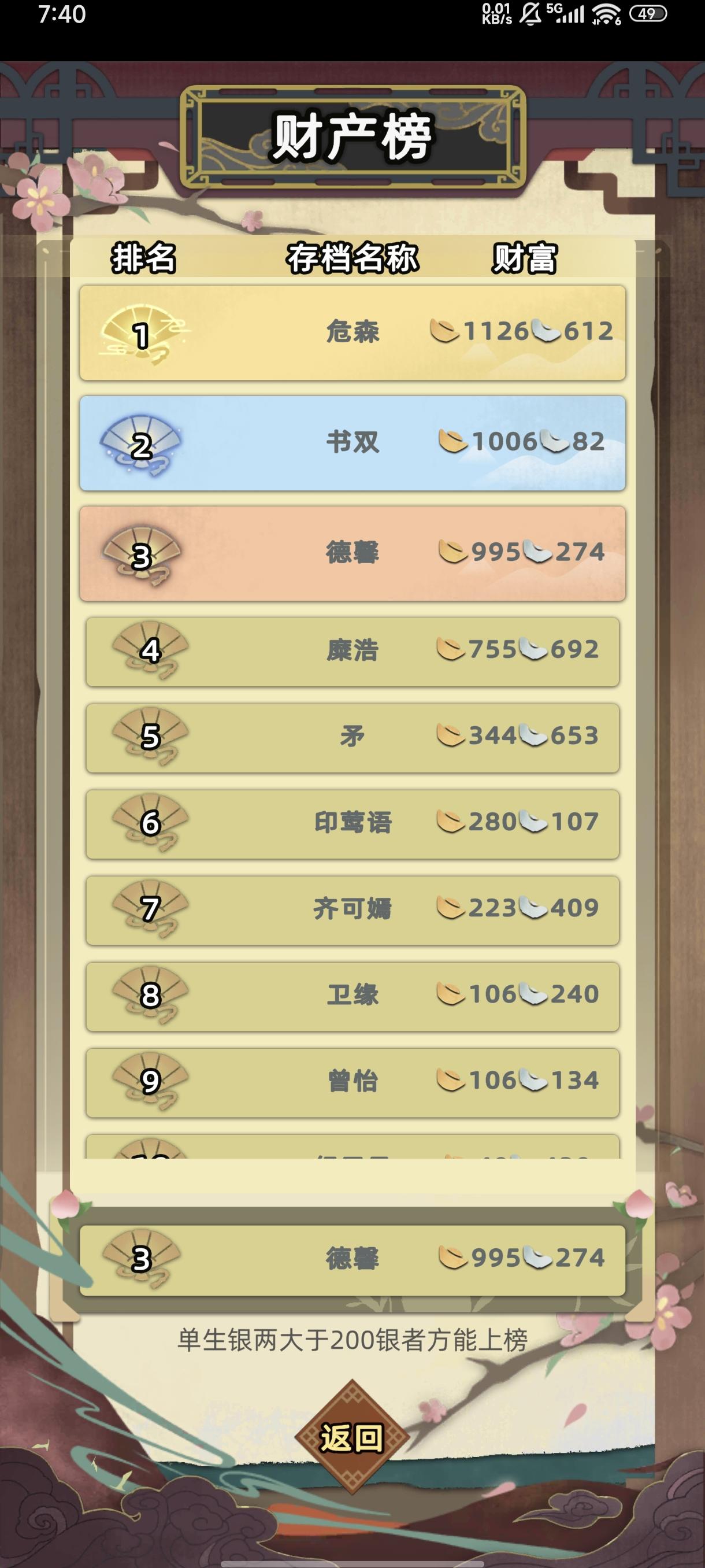 #江湖人生 这游戏咋说呢因为没有申请版号而中途跑路的一款游戏。最终成为了一个半拉柯基的半成品。一开始可能会觉得没什么,但是你玩一阵子包腻。我们不是内部人员,所以。最多5000战斗力,在这游戏就到顶了。战斗力过高的话,甚至他们不会让我们正常的。进行游玩当代人生和这个。只能说是经典二部曲。至于未来,人生我无力评价,所谓高级市民高级冤种还差不多江湖人生和当代人生这俩游戏难兄难弟,都是没有版号。制作他们的