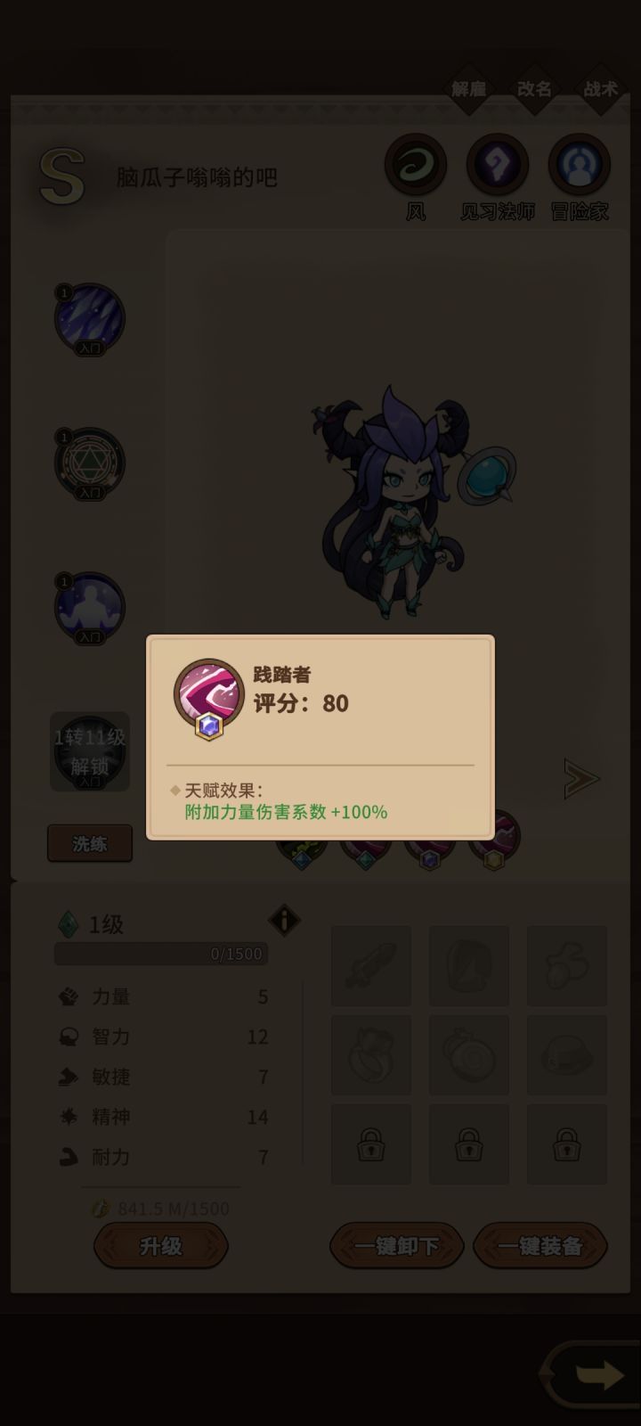 不删档测试他终于来了,这测英雄天赋也是改动(削弱)很多,基础属性也拉低了,然后怪物感觉变强了,对于冒险老玩家来说都很难打,更别说刚入坑的小萌新了,那就让我大又包来跟兄弟们分享一下拳打咕噜,脚踢达肯,爆杀鼹鼠的小技巧。开局直接选战士,没说法,战士天下无敌!D级,C级,和B级英雄的升级经验是一样的,而A级英雄升级经验是前面的1.2倍,S级就更多了,想快速推图而且还具有一定战斗力,就最好用B级英雄,紫