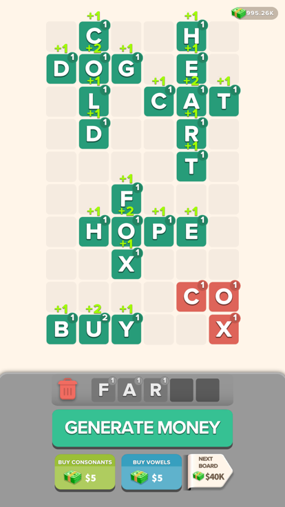 - You can create words separately or combine a couple of words to earn more
