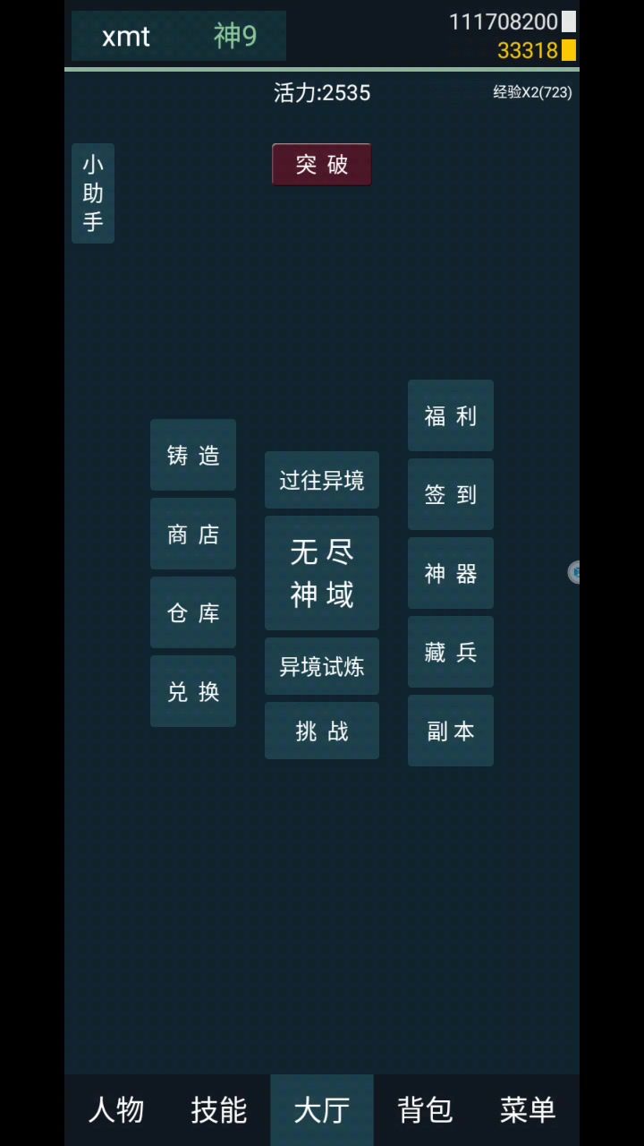 断断续续的玩儿了有6天了,刚开始觉得好难玩,难度大,慢慢就知道怎么玩了,群里有大佬解惑新手进游戏先打开荒异境,打完过后就可以在异境试炼里挂机爆装备啦9级经验满了,有了一套装备过后就可以去突破前期加点全点力量作者更新的很勤,新出了个世界boss奖励拿到手软在讲一句,加群加群,可以少走弯路,大伙都很热心