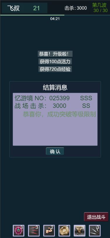 开局站着,攒经验,大概到20关,然后一边打一边判断自己血量,越到后面技能不重要,靠20%回血,很稳,加油。 属性在视频里,不用刻意追求词条。