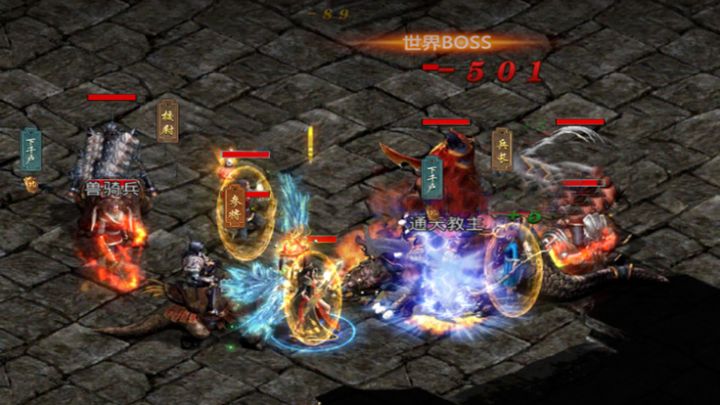 多人同台跨服讨伐世界BOSS,争夺稀有装备。