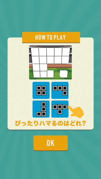 ブロックの隙間の形を見極めて、そこにピタッとハマるものをタップするだけ!