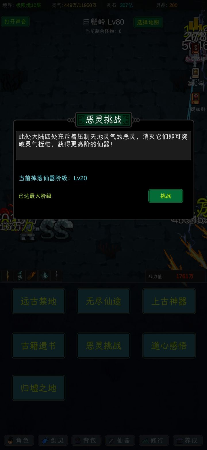 开局换兑换码和看广告,灵晶买天机令抽奖,刷完气运后把技能和神器都解锁和升级。看你想玩的流派洗气运,想快速升级的就洗聚灵,法修:大力,法术之心,快速咒语,仙尊转世,武圣之资,聚灵之心。(武圣或聚灵可以换暴击率,不要洗普攻,攻速,防御,灵石,属性加成这几个就行了),洗完气运开始挂机过图。前期不要用天火洗装备,刷好气运一般来说每一阶恶灵挂一会装备然后强化一下差不多就能过了,到13阶装备以上再洗词条,