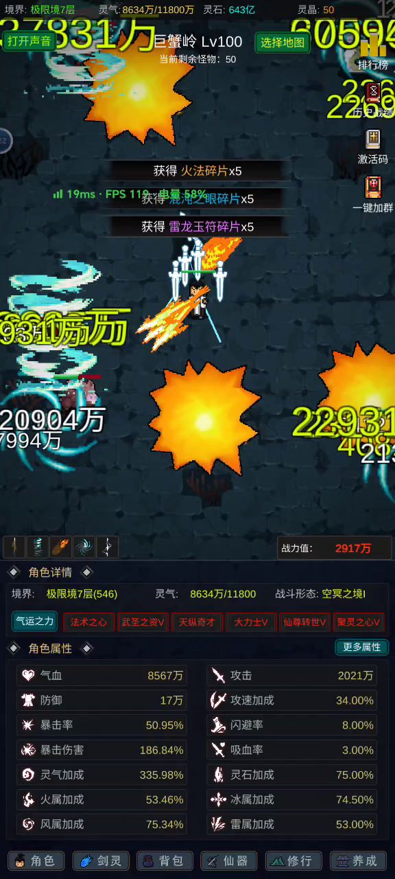 古籍灵气加成拉满,神器灵气强化拉满,仙器全洗灵气加成,近1200%灵气加成离线挂机!#有谁不喜欢剑仙呢