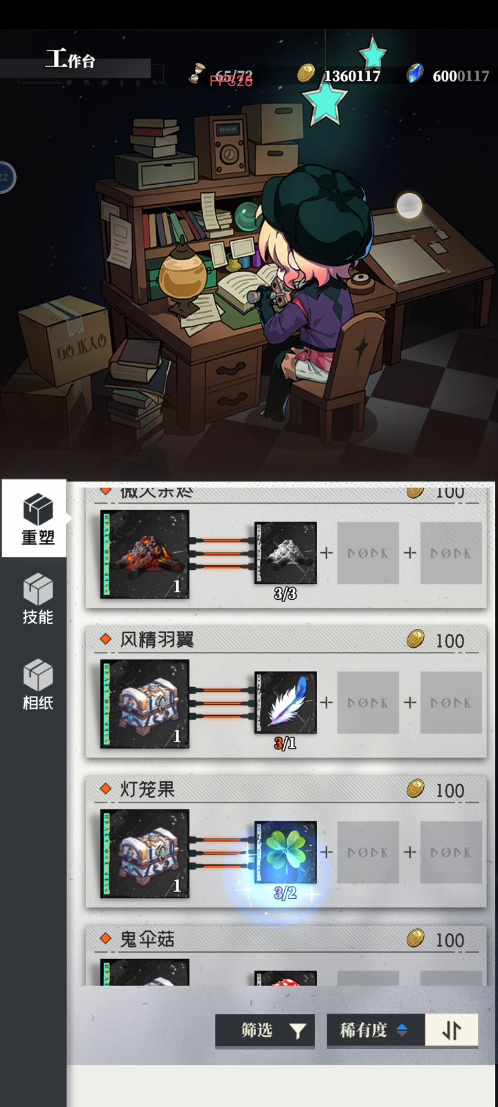 好了,花了金票把贤者之石的材料也买齐了,是真的金的一点就闪退,那就两个情况了呗,显示错误六级才能制作,或者根本就制作不了,重塑II看来没什么希望了,我吃了个bug才一晚上睡醒5000多情报的,今天又只有300多,甭想六级了