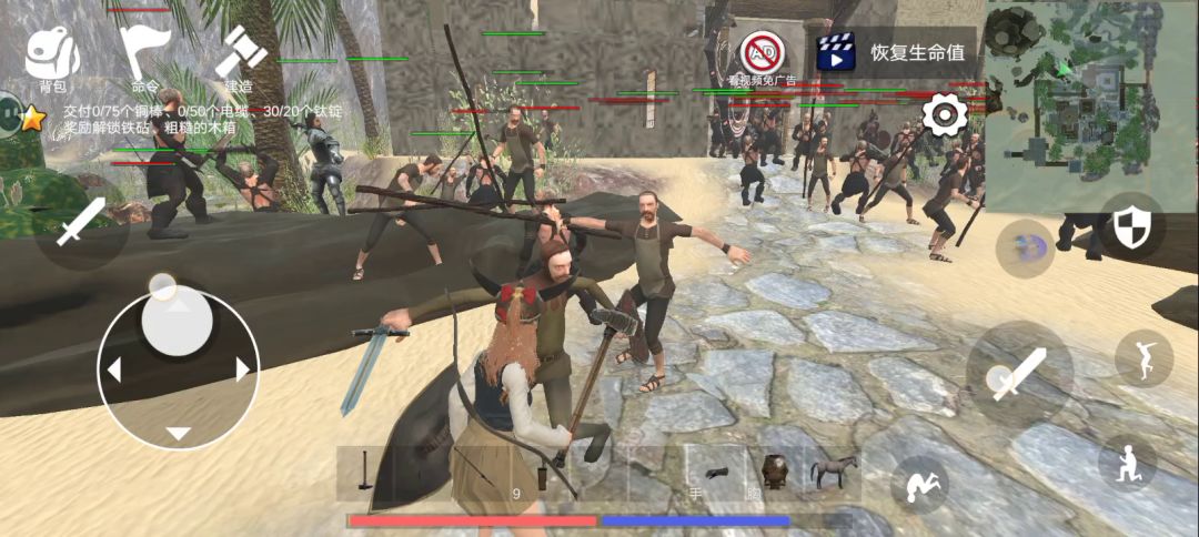 人多追你就边跳边打,在空中蓄好力,落地看准就好打,人少就不要跳,直接蓄力打就好了。先打弓箭手,尤其是房子上的。攻城是不会派出骑兵攻城的,所以也要多培养别的兵种。带队320兵拿下这座城,差不多死了70多个兵。感觉还是打打人少的城镇好点。