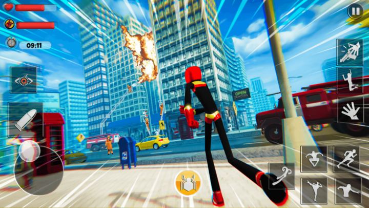 火柴人是可以做任何事情来帮助陷入困境的人民的人。 在广阔的开放世界中,您仍然可以进行出色的3D动作。 火柴人的生活并不容易。 有趣的射手将在每个角落发生。 飞行英雄转变为火柴人蜘蛛,在城市中与他们作战并赢得胜利。 火柴人英雄控制着这座城市,并保护大城市免受罪犯或其他恶棍的侵害。