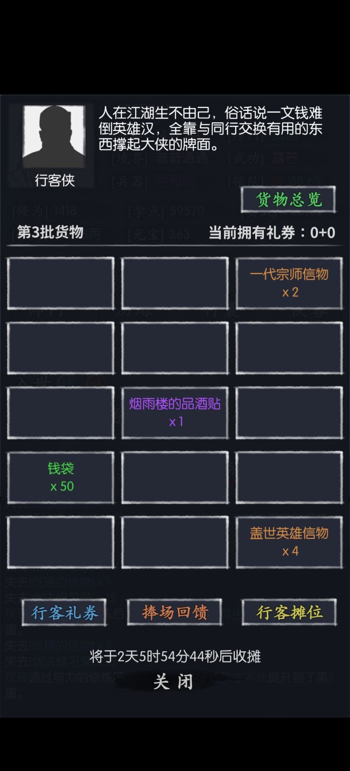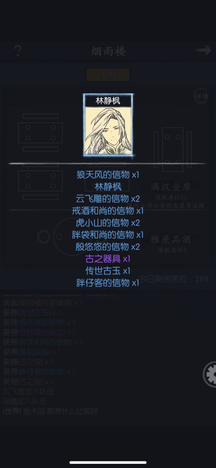 跟新人说一下。前期元宝多的别乱花,除了古董当赌狗之外,除非是黑市出五折左右的其他尽量节约。尽量屯一点,等韦小宝的活动。活动侠客嘎嘎猛。然后选那个花100元宝抽六次的,每天300元宝。非常划算。