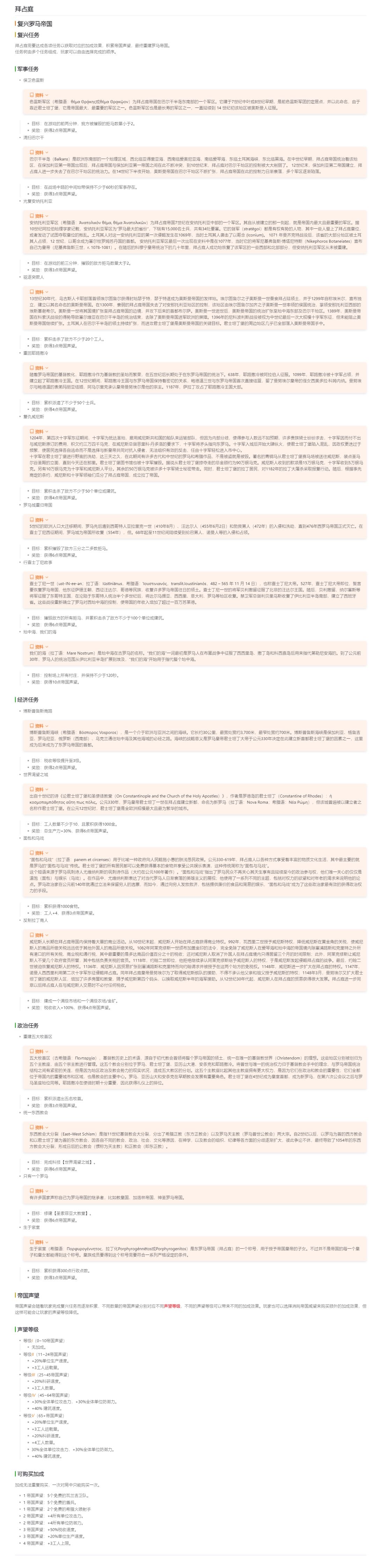朕即国家L'État, c'est moi 0.190版本更新 新增三个新派生势力 大明-朋党朝廷。 带有【内阁】 机制的大明。作为大明朝的皇帝,您将在内阁中遇到形形色色的官员;既得想方设法让他们为您办事,又得让他们之间相互制衡。若使朝堂上下同心协力,那您的社稷必定千年永固。 法兰西-朕即国家。 带有【三级会议】 机制的法兰西。作为法兰西的国王,您得“优雅”地从三个阶层中拉拢与打压,对三个阶层的不