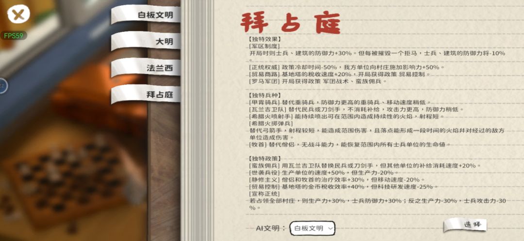 三篇攻略中的第一篇文明介绍【大明篇】 这三篇攻略主要是介绍三个文明的优劣,以让大家选择自己喜欢的文明和合适的玩法 1:大明 【词条篇】 其实词条中我认为有用的就两个,分别是万里长城和天朝大国。 而有用没用的评判标准是相对于其他文明的,后面便会提及。 【万里长城】加的拒马血量可以让你换家时比别人快。 【天朝大国】+1工人前期是很大的优势。 【兵种篇】 真的,不是我吹,大明在中期对线是