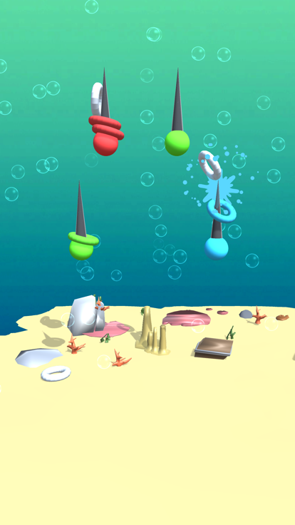 You can move the hoops you see on the ground in the water by sliding the screen. Pass the hoops to the objects and continue your adventure underwater....