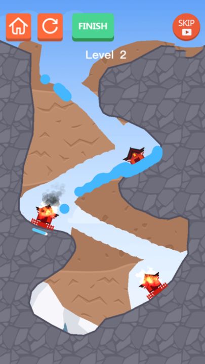 民居着火了!快滑动你的手指,引导水源流向着火的房屋,解决熊熊燃烧的大火!~