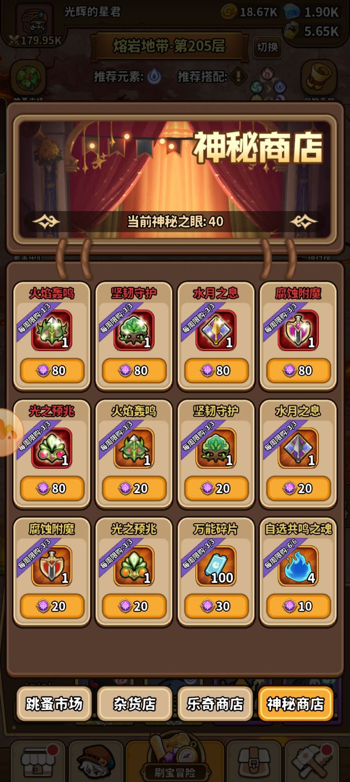 前言:鉴于目前群里好多萌新问阵容搭配,至宝搭配等问题,在这里直接解答了。目前来说水赛季没开,齿轮绝版,但是天轰这个目前版本答案通关没有问题。正文:至宝:新手首先在图一至宝池中抽出5个天外飞石(任何颜色包括紫色都没关系)然后停手,去神秘商店兑换3个火焰轰鸣(先换三个金色,然后换出红色即可)凑成“图片1”阵容:凤凰骑士,船长,大魔法师,不灭者,恶魔使者,蛮牛战士,水宝宝,愚者。“图片2”重点: