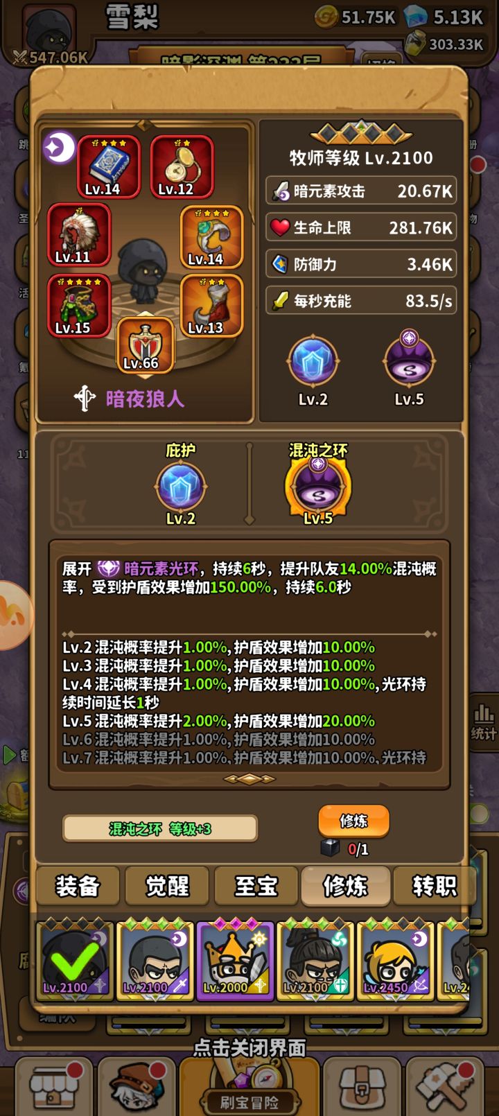 我走的是腐蚀附魔,射手流,再配上暗影狂暴。腐蚀附魔是贯穿物经过暗光环激活后额外附加暗属性伤害,暗影狂暴是暗斩击暗光环触发几率重置普攻。所以有暗光环的牧师-暗夜狼人是核心,原子武士伤害足够高,这两个英雄和暗影狂暴都在一个暗限时池子里。守卫我用追风者,嘲讽加自身高额免伤。因为队伍里没有奶,一般要补一个奶妈,不用奶妈选牧师-愚者(白胡子)是最好的,加能量、大招充能、攻击速度都是很好的辅助,高额护