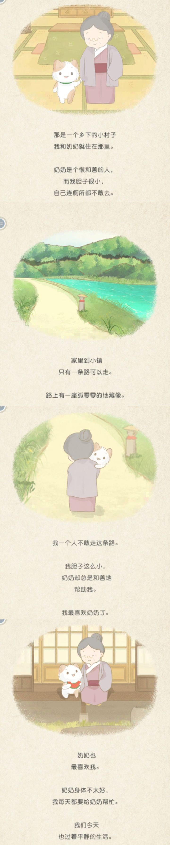 故事的开始,我是一只小猫,我有一位对我很好的奶奶,她总会鼓励我,帮助我,也很爱我。可是……奶奶的身体不好,那一天我记忆中最后是在等着奶奶……而我,不是小猫,我在记事起,已经跟在父母的身边了,小的时候我也在奶奶家过的,在山里……灵魂也是自由且舒适的,奶奶的山是倍感温情的……请不要杀我用小猫(划掉,亲情)刀