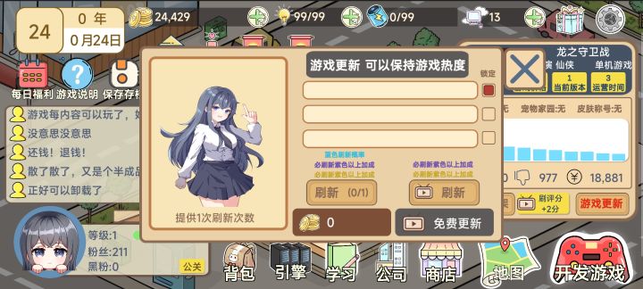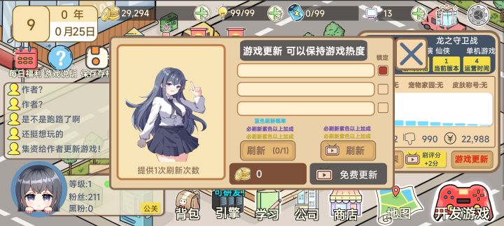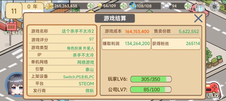 太简单了,😃教大家怎么玩,开局先领50000然后开发第一个作品,在版本更新中一定要刷出加粉丝的,然后至少有1500粉丝就给第一个作品下架,然后建公司,看广告先招一个s员工,然后给一个类型升到二级,尽量有264分质量笫二个作品,发售后一直刷价格,前面5个版本马上更刷价格,然后后面公司点产品营销加流量,注意游戏尽量不让合伙公司分利润,到了后期直接选第一个平台发布,因为第一个平台只收百分之五的利润。然后差不多第一个月就要收四五百万的钱,因为一个s员工要400万。如果那个钱不够的话,你就先把s员工开掉。然后也不要刷新,下个月再找回来就好了。相当于直接白嫖她。😋然后有钱了就快点把属性刷上来。然后就开始自研引擎。打印钱都是卖等后面有钱了,等差不多第三个作品就可以实现100分,高质量。然后赚的钱还多。