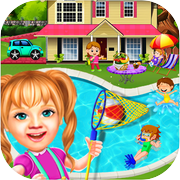 与这个可爱的小孩泳池派对游戏夏季游泳池派对的乐趣。