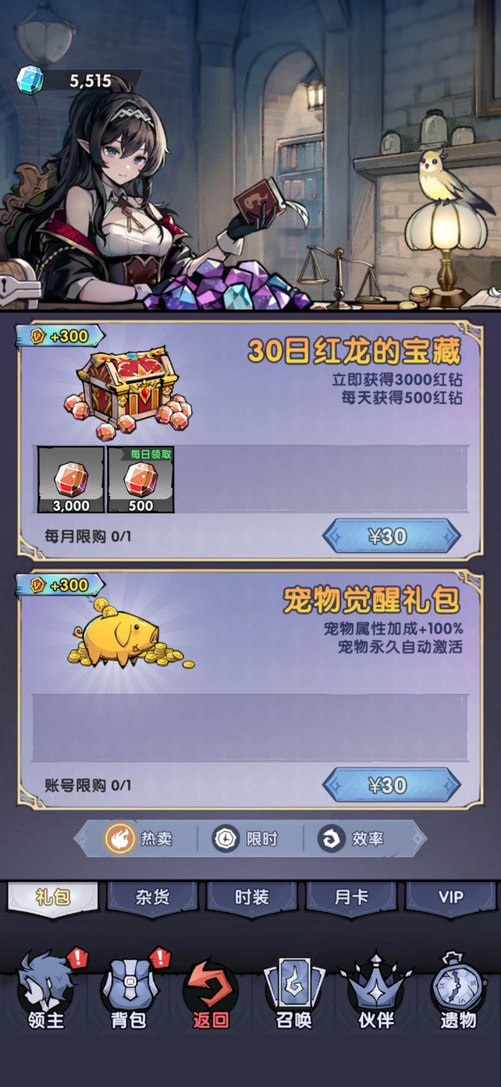商城礼包:广告,成长,资源,钻石,副本,红龙,宠物每个礼包30需要210元