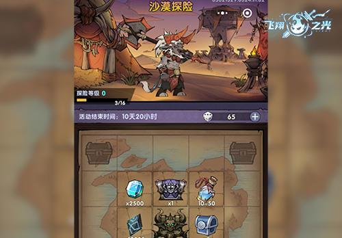 《飞翔之光》探险盛宴再次开启!每日轻松掷骰,蓝钻、神秘遗物箱、洗炼石等宝藏等你来发掘!更有纯净水兑换红钻、珍稀系统碎片等惊喜。这样福利拉满的活动,你可千万不能错过! 这次的探险主题是沙漠探险,活动的背景板被设定在类似沙哈拉大沙漠的地方,有部落帐篷、连绵起伏的沙丘等等特色景观,而玩家在探险旅程中搭乘的坐骑也是皮糟肉厚的大犀牛。 这个活动的玩法也非常简单,玩家每天登陆游戏就能获得免费的