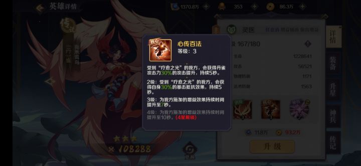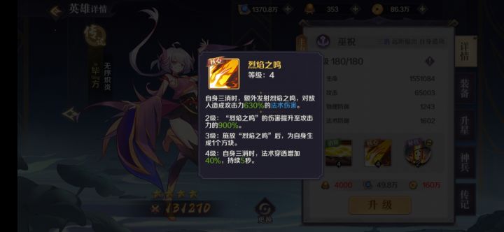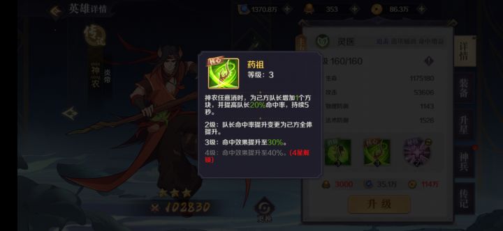 id1172,游戏名称后羿,玩了四天了,说说心得体验我所推荐的阵容是以毕方、神农、丹雀为核心的打法,毕方做队长,毕方三消释放核心技能,会额外再释放一次,神农的核心为触发消除技增加一个队长块,而丹雀给队友奶完还能增加队友攻击力,在两个辅助下辅助下,输出核心毕方可以无限技能,疯狂输出。技能详细介绍如图。