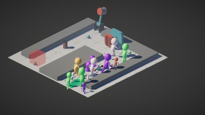 通过拖拽障碍道具来阻止小人们的逃离