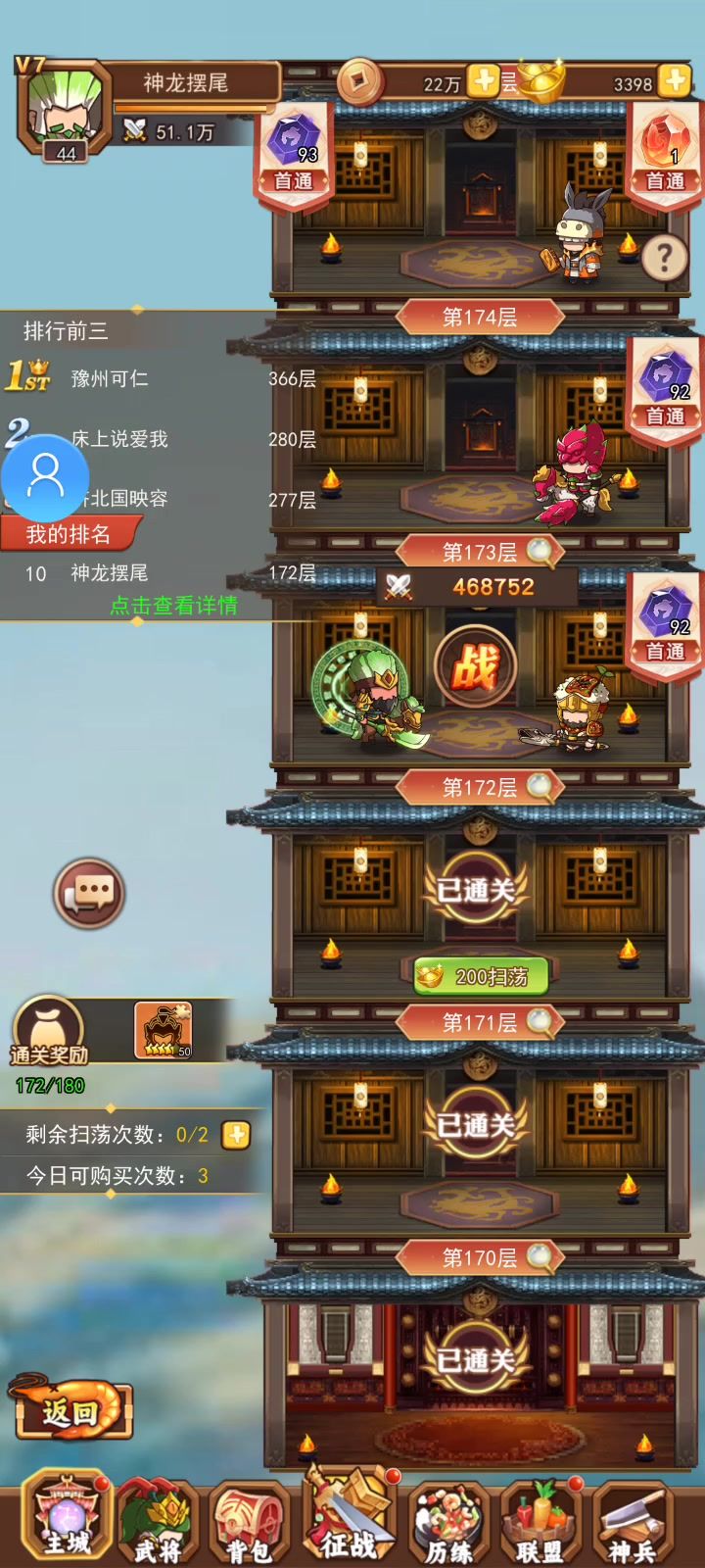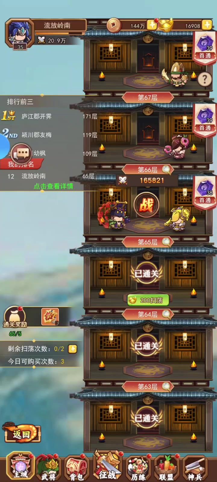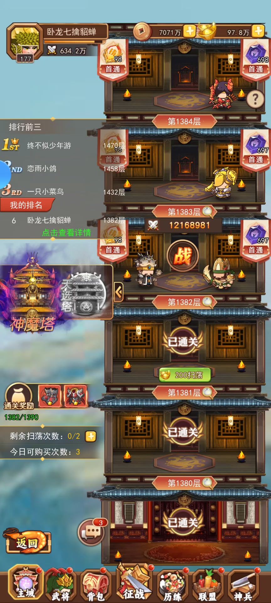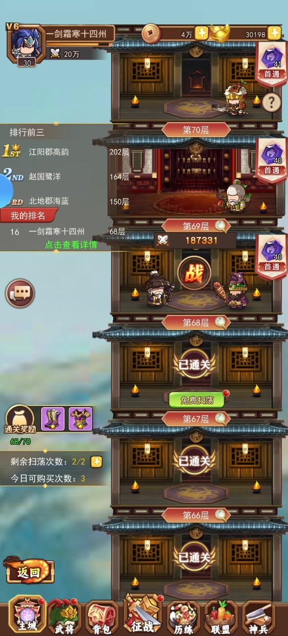 第一天闯塔 记录一下 第一天70 还不错
