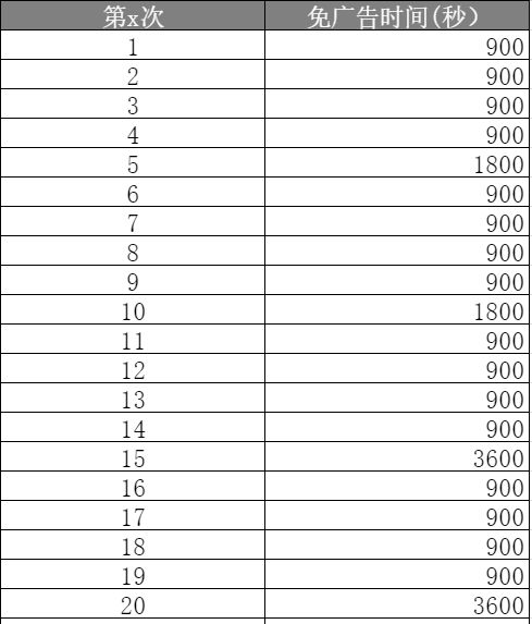 今天,我们认真听取了玩家的建议,对广告杀手数值做了一定的调整,并扩展了免广告时间,如下: