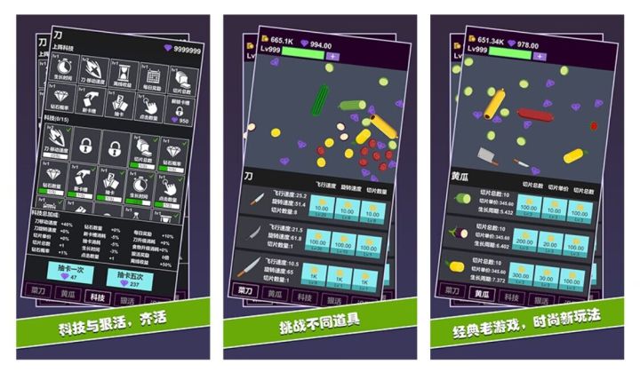 大家好啊,我们的新游戏《黄瓜茄子切切切》来啦! 这是一款益智休闲解压小游戏,玩家点击屏幕食物,就会切片,再点击切片就会获得金币或钻石。玩家可以选择不同种类的刀并不断升级刀,才能切开更多的食物来获得更多的金币和钻石。钻石可以解锁科技,获得科技后可以让刀变的更强大,让食物变得更珍贵!快来参与这场挑战,切开各种食物获得奖励吧!新游戏福利:使用 HKeyGameICC 兑换码 免费兑换 金币 100
