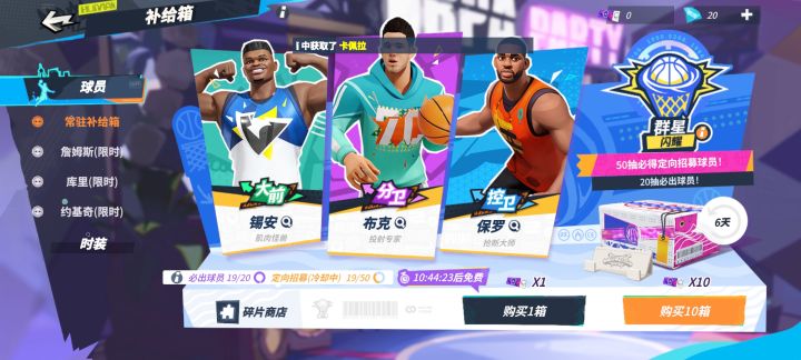 即便遇到浪投的、黏球的,只要防守不失位,一般不会喷人。玩了这么多年,这么多款,心里建设已很健全。要想打巅峰冲段的,还是必须有固定队,一个人做不到次次带飞。内线没怎么练,感觉这游戏篮板判定很迷,经常错过板,地板球倒是能捡几个。最恶心的就是抽角色,就给些垃圾材料,刚开服送了些还能玩玩,过了新手期就这概率,怎么强化,怎么抽新出来的。其他抽卡游戏,比方说会给个种子让你慢慢升,种子会比较好出,就算强度跟