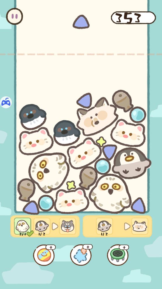 总有4个关卡,海洋关结合主题用“浮力”设计,极地关则增添了任务系统,整体超了我的小预期!同时,在合成一定数量的小动物后,会解锁它的不同形态在我们的主场景中,也可用小鱼干购买装饰,打理我们的岛屿!
