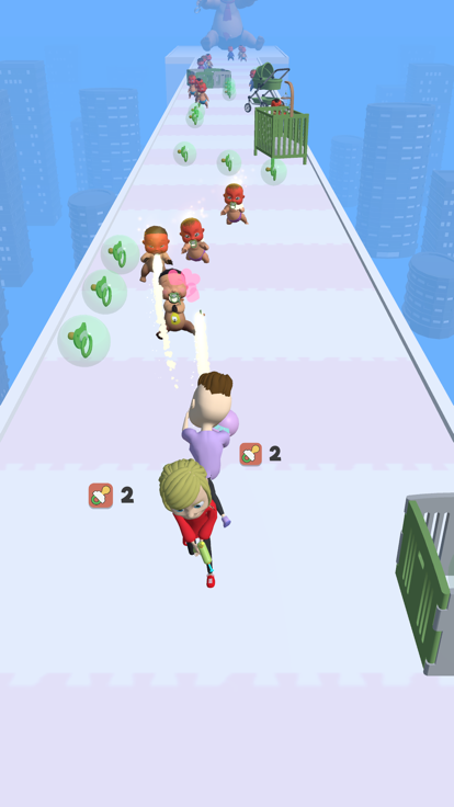 Collect the pacifiers on your way and shoot them towards the babies to calm them, nice and easy! Swipe up to rotate the parents since the only person that can collect the paci...