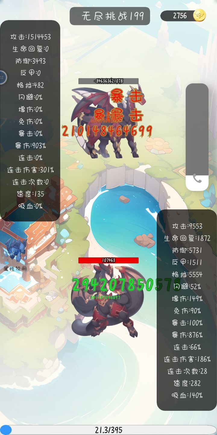 目前体验下来,连击这一条属性强度是真的高,就我发的图这伤害甚至不是最后一刀,伤害看着很爽。但是每一刀都要额外播放一次进攻动画确实体验不佳(费时间)。