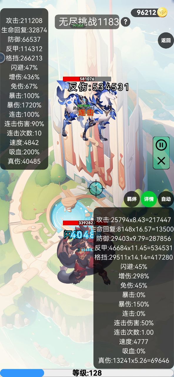 核心思路:双方互砍不掉血,进入五回合后的鏖战强行掉血,凭借自己的强势回复,熬死对面。 属性选择: 优先级:防御+格挡+生命回复(不分先后,感觉哪个低了拿哪个) 前期拿数值高的,进入无尽模式开始拿百分比高的,哪个百分比高那哪个 副点属性:生命值(防止被秒) 附加属性:免伤+闪避+反甲 这三个熟悉是在没有上面属性的情况下拿。免伤:可以在一直拿,超过属性可以转换成生命百分比。闪避:没到上限的时候可以