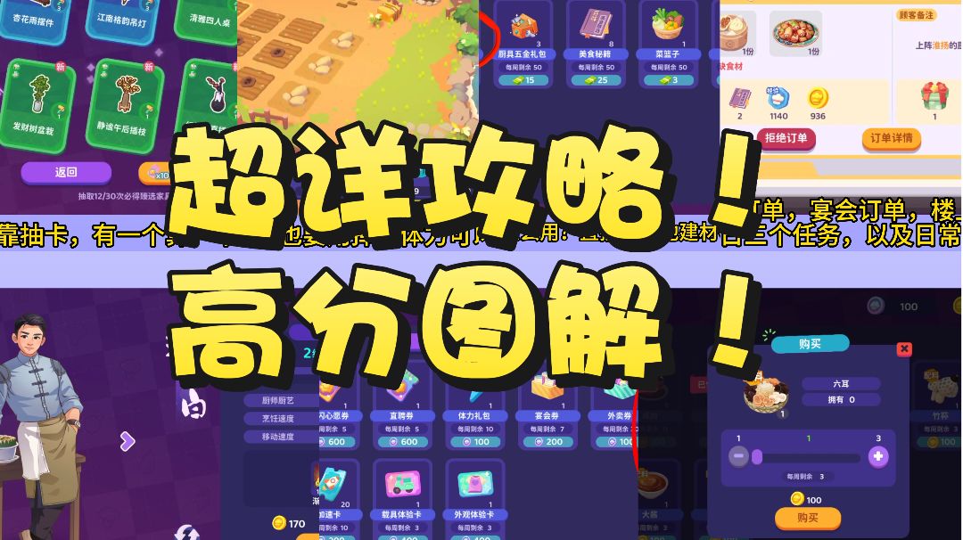 小👉目录 卦📌-如何正确购买物资类 游📌=环境分等如何提高类 戏📌≡一些小技巧快速攻略类 ——————————正文———————— 👇【如何正确购买物资】👇 1.首先是金币的花销,一定要把这个配料拉满,全买了!因为这个刷新时间长,且我们的金币很富裕,所以大胆买! 攻略二,紫色贝壳币怎么用?直接买美食秘籍!有多少是多少!拉满最好! 攻略三,绿色票票怎么用?直接买扩地建材礼包!狠狠买!!真的!很缺!扩