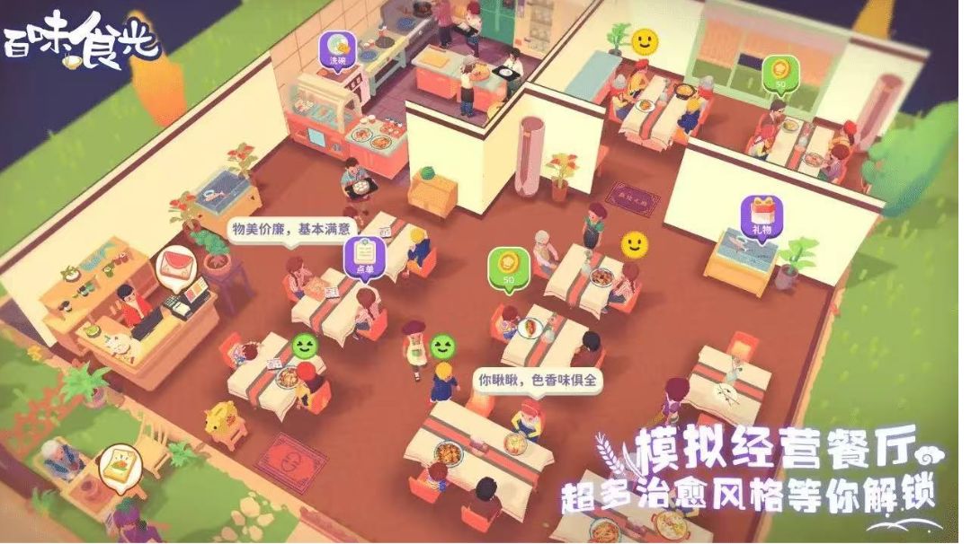 《百味食光》是一款以中华美食文化为核心的治愈系模拟经营手游。玩家将化身海滨小镇的餐厅掌柜,从一家简陋的小馆起步,逐步解锁十二大菜系的 300 余道经典菜品,在煎炒烹炸间还原真实烹饪流程,体验从食材处理到摆盘上桌的完整乐趣。 经营玩法深度融合策略与创意。玩家需兼顾顾客服务、后厨管理与店铺扩张:通过完成主线任务快速升级,解锁新菜品与厨具;合理规划餐厅布局,从桌椅摆放、主题装修到庭院扩建,均可自由定制;