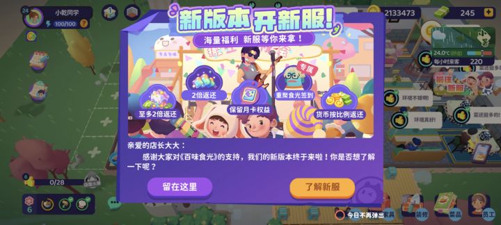 全新楼层4月9日即将开启,婚礼宴会、礼乐舞台、地方美食,还有全新厨师加入餐厅经营!快来搭建属于你的宴客场地吧!在新楼层中继续体验经营与建造的乐趣~烟火暖人心,食光赴新程!4 月 9 日,《百味食光》「乐宴食记」版本与你不见不散,一起打造属于你的百味餐厅!活动时间:即日起 -5月2日参与方式:分享你期待的更多玩法,即视为成功。活动奖励:活动结束后,我们将随机抽取幸运参与者送出:10位精美钥