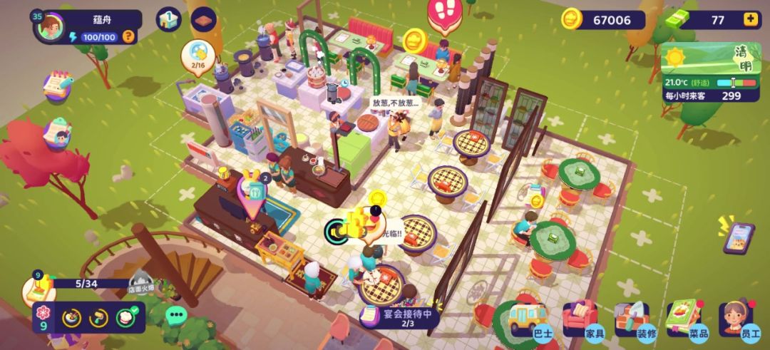 一天到晚全是bug. 这个宴会一分半的视频愣是没吃上菜 这录这个视频之前,我已经盯了屏幕一分钟了 而且重新规划了我的餐厅之后,永远有一个人走不到收银台 每次进去肯定会有一个人走不到 但是他就卡在那儿,会有一个顾客坐在他的位置上 相当于一个位置卡了一个人,又坐着一个顾客 我真的是服了这个游戏 而且你35级才可以开第4条主线 这也就算了 第4条主线做到第2个子任务 你就要我完成一个可能要到38级才能完