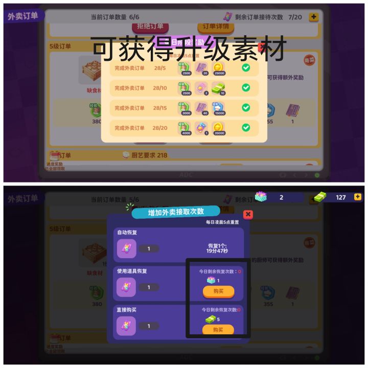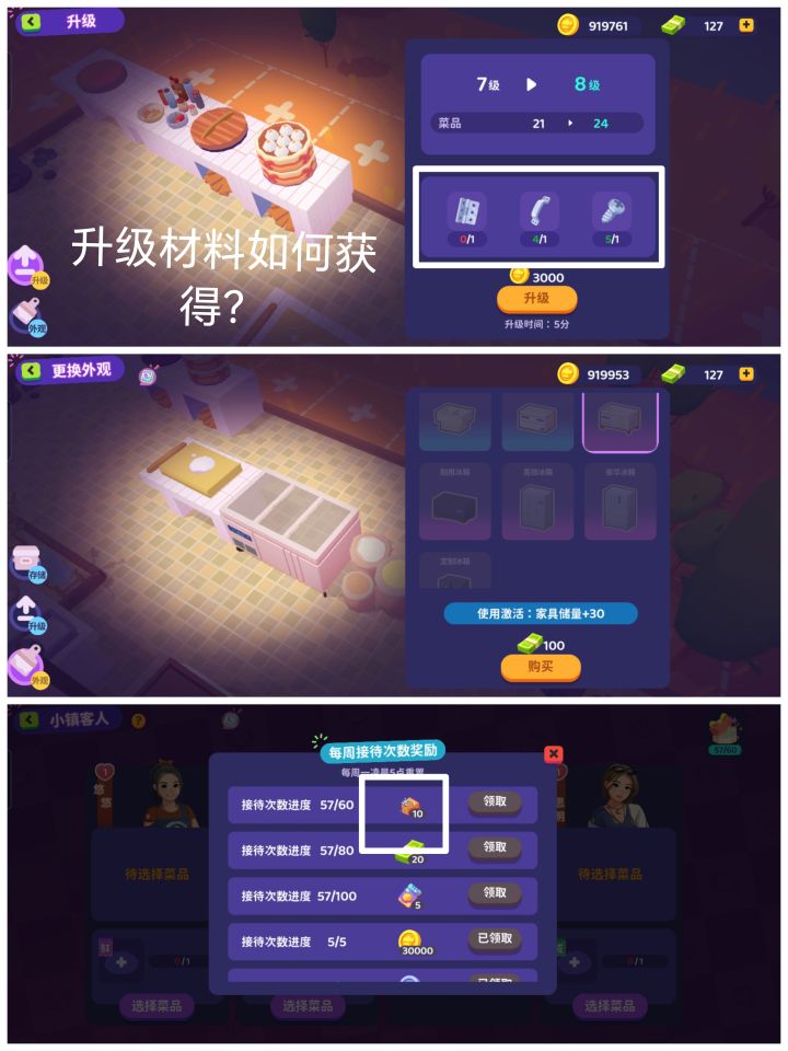 全是干货,一定要结合图片!升级等级主要是依靠经验获得,先跟主线到12级左右,先不急着去刷宴会外卖次数,因为很有可能下一个主线就要你的次数,那就容易卡关推到一定等级,解锁了每日任务以及p1海风日常海风故事后,先去小镇找到地图点击店名就可以自动追踪,先投资p2,获取食材再回餐厅解锁食材,再先升级厨房用具仓库,这个时候只要金币就可以,风风花里的食材等级也是可以靠这个加的哦温馨提示:下线是没有经验收