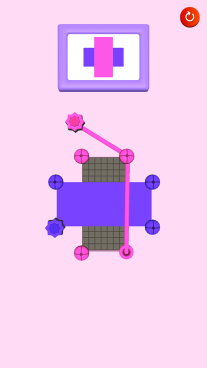 Paint tiles with the correct rope to obtain the above shape. Wrap around of the pins with the ropes to obtain the correct area.