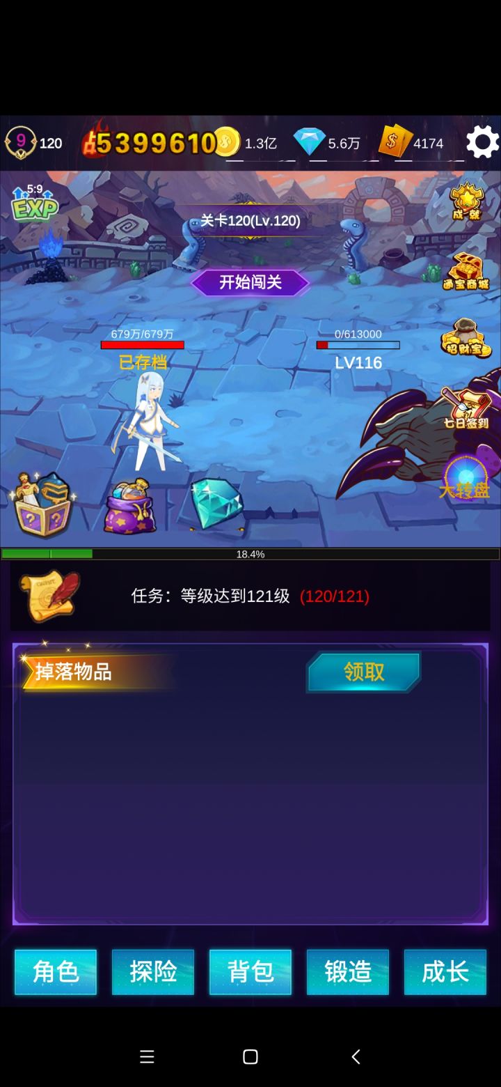 进入游戏①第一件事,把QQ群的礼包码全兑换了。taptap还有签到礼包。②点福利→vip礼包商城,把所有礼包买了。然后点成长→兑换,拉最下面180级后免费换1000代金券15000钻那个,留个2000卷这样做每日任务,多的全兑换了。就能v10起手经验加成超牛。③点福利大转盘,疯狂转起来!④点左上角exp经验,把广告看满,然后挑战关卡,有装备就装备上,中间那个开始闯关记得一直保持推到等级的最