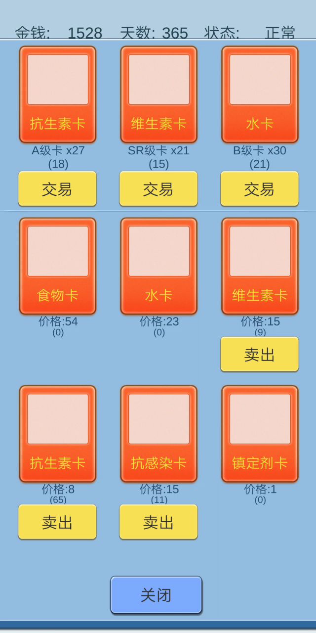 在这里说说我的想法,开局的天赋真的很重要,好的天赋像精神强大是真的强大。前期苟着就好,没水卡和食物卡了就用镇定剂抽一波卡到后期基本卖什么都贵。