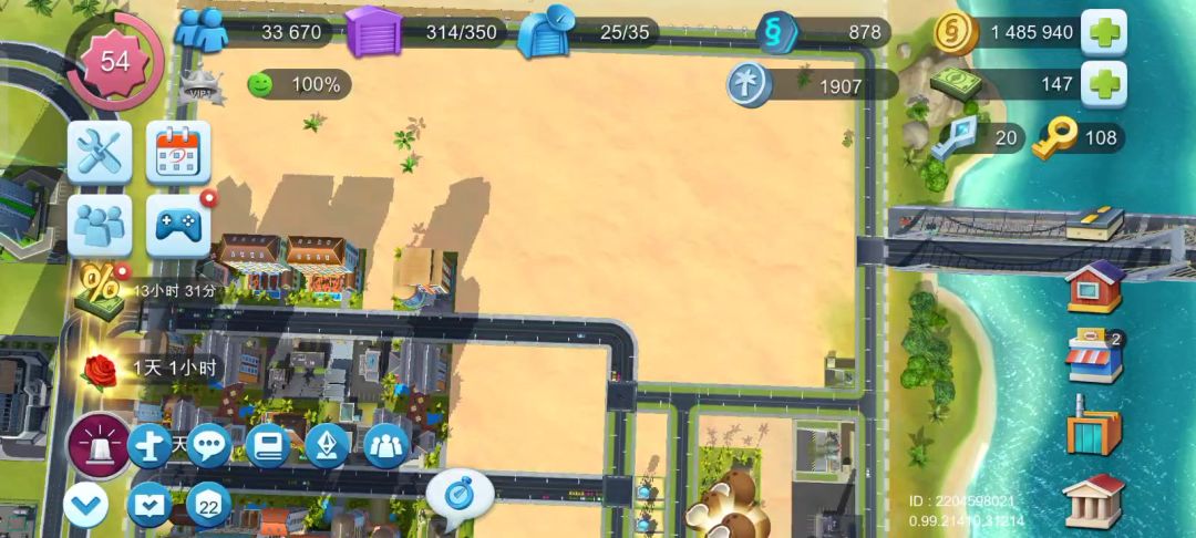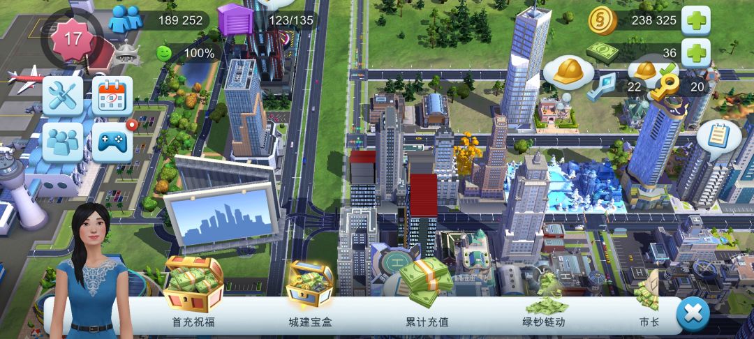 之前玩过一次,但是各种资源被卡,人民不开心,堵车问题重开过一次,总结了以下经验: 1.要卡级,但是要尽可能提升人口,人口高才有高级工厂,槽位越多攒钱越快。 2.尽可能普及公园、教育和交通(先教育后交通,教育提升比较平滑),因为玻璃大楼需要至少三种加成。 3.VIP2性价比极高,船来得快,金钥匙也攒得快,可以说是最稳定的获取金钥匙的方式了。 4.人口高的一个副产物就是铁路系统攒乘客速度变快,驼马线是